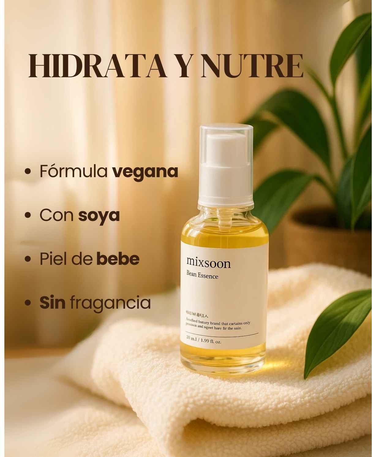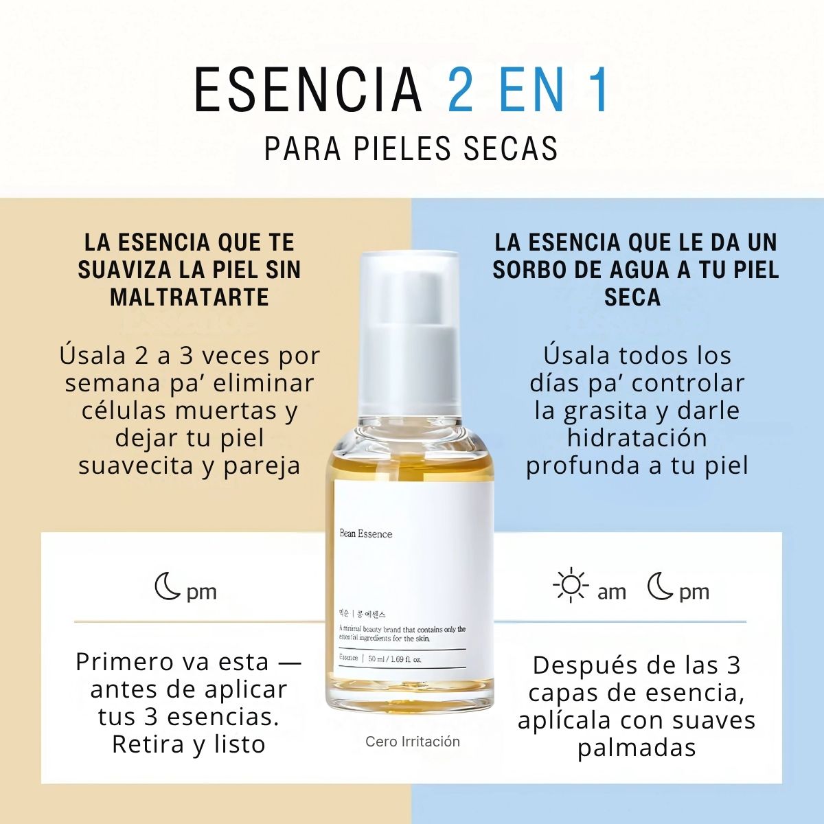 - Bean Essence es una esencia suave, ideal para exfoliar e hidratar la piel texturizada sin causar irritación.